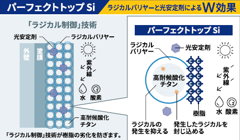 特に、紫外線による塗膜劣化の原因となる「ラジカル」を抑制する技術が大きな特徴で、