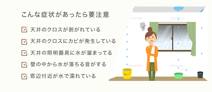 ※一次診断(ヒアリング・目視点検)は無料で詳しい調査(散水調査)は別途費用が発生します。